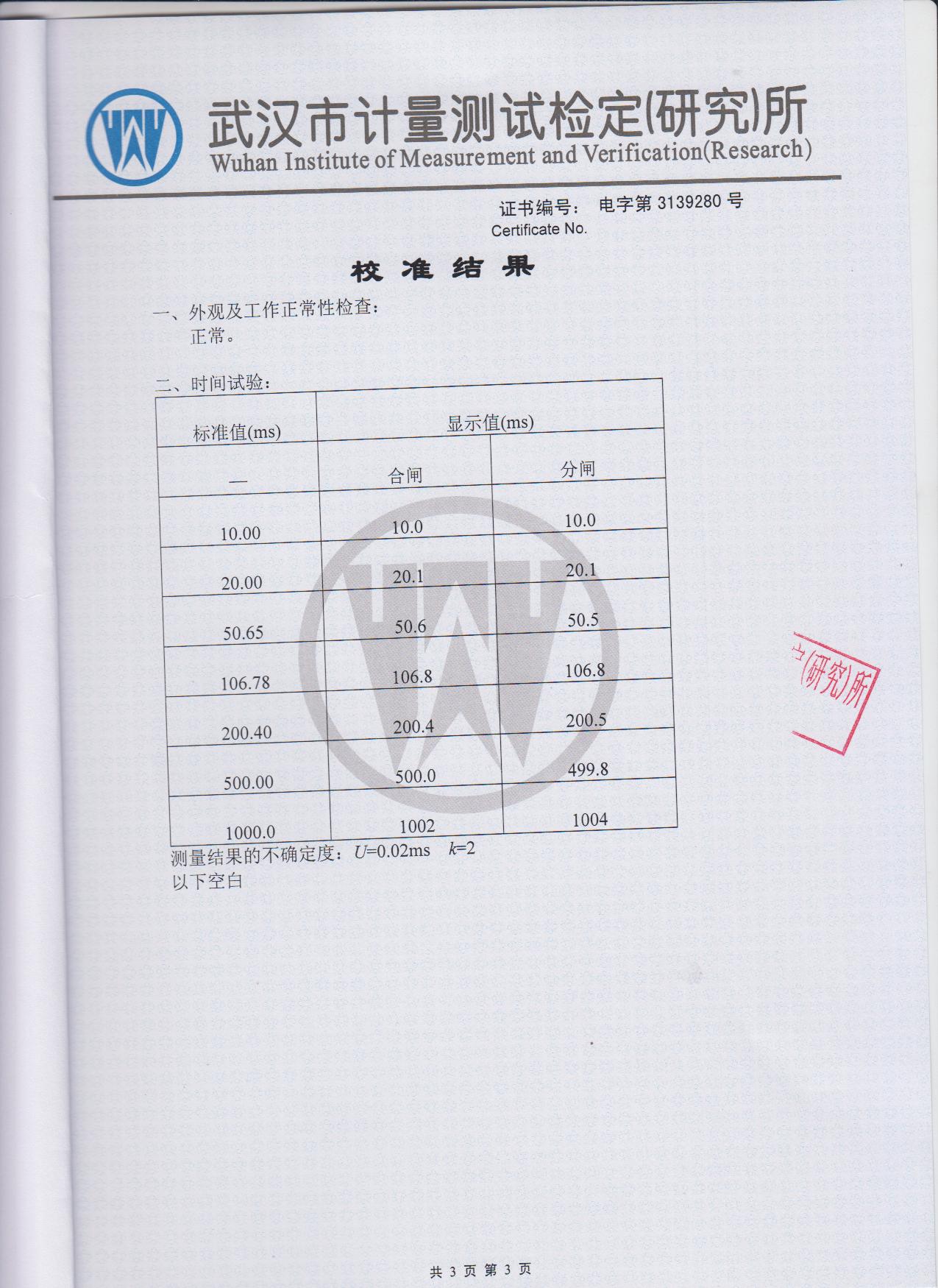 分辯率 真空斷路器  0.1mm