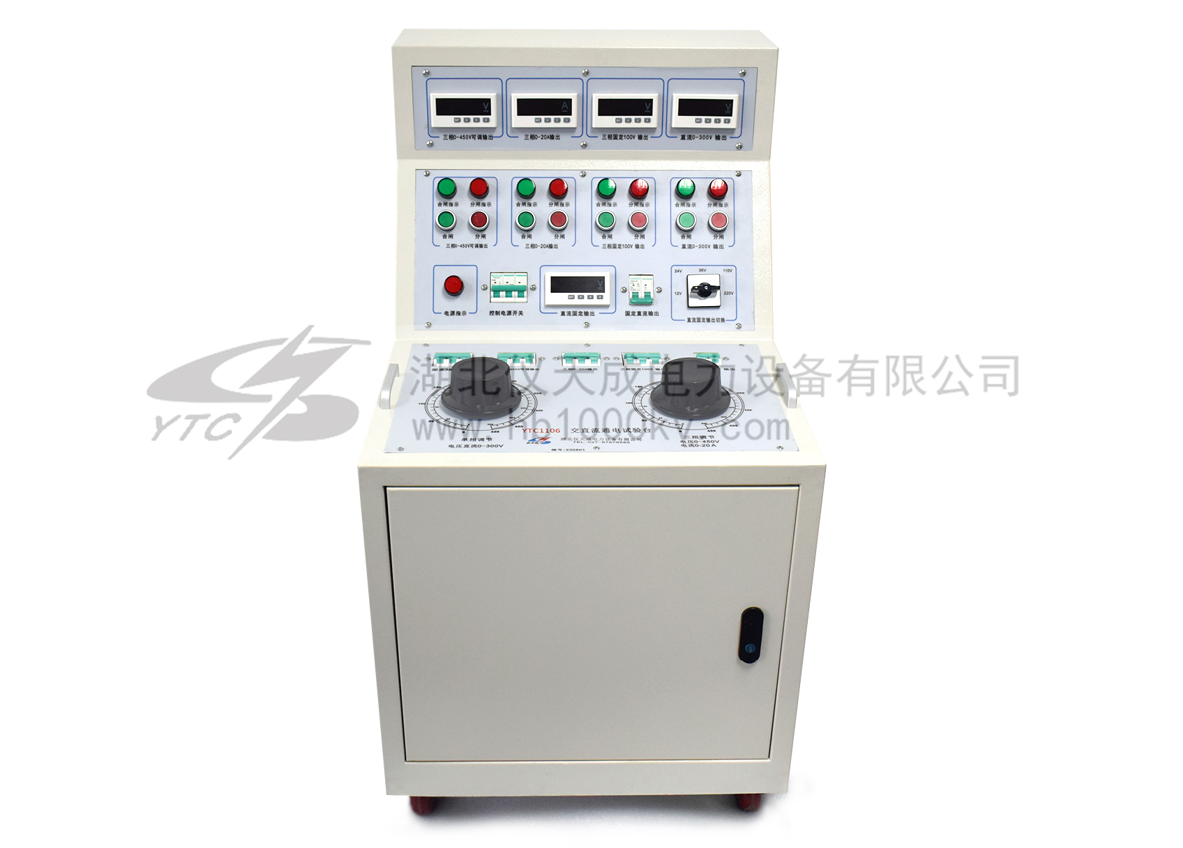 1、三相AC100V輸出(固定值) 一組 2、三相AC 0 - 50A輸出(〈10V,可調(diào)值) 一組 3、交流操作電壓輸出 AC 0 – 420V,220V時(shí),電流小于10A 一組 4、直流操作電壓輸出24V.36Ⅴ.48Ⅴ.110Ⅴ.220Ⅴ 5、單相AC220V輸出(固定值,插座形式) 二組 6、三相AC380V輸出(固定值,接線柱) 二組 |